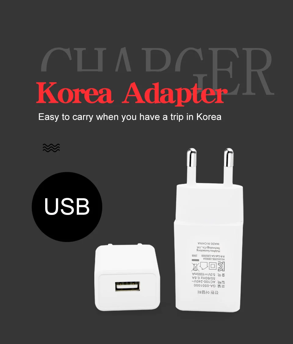 Корейская Вилка питания конвертер дорожный адаптер EU зарядное устройство 5V1A 2A usb интерфейс для маленький мобильный телефон Высокое качество KC Сертификация