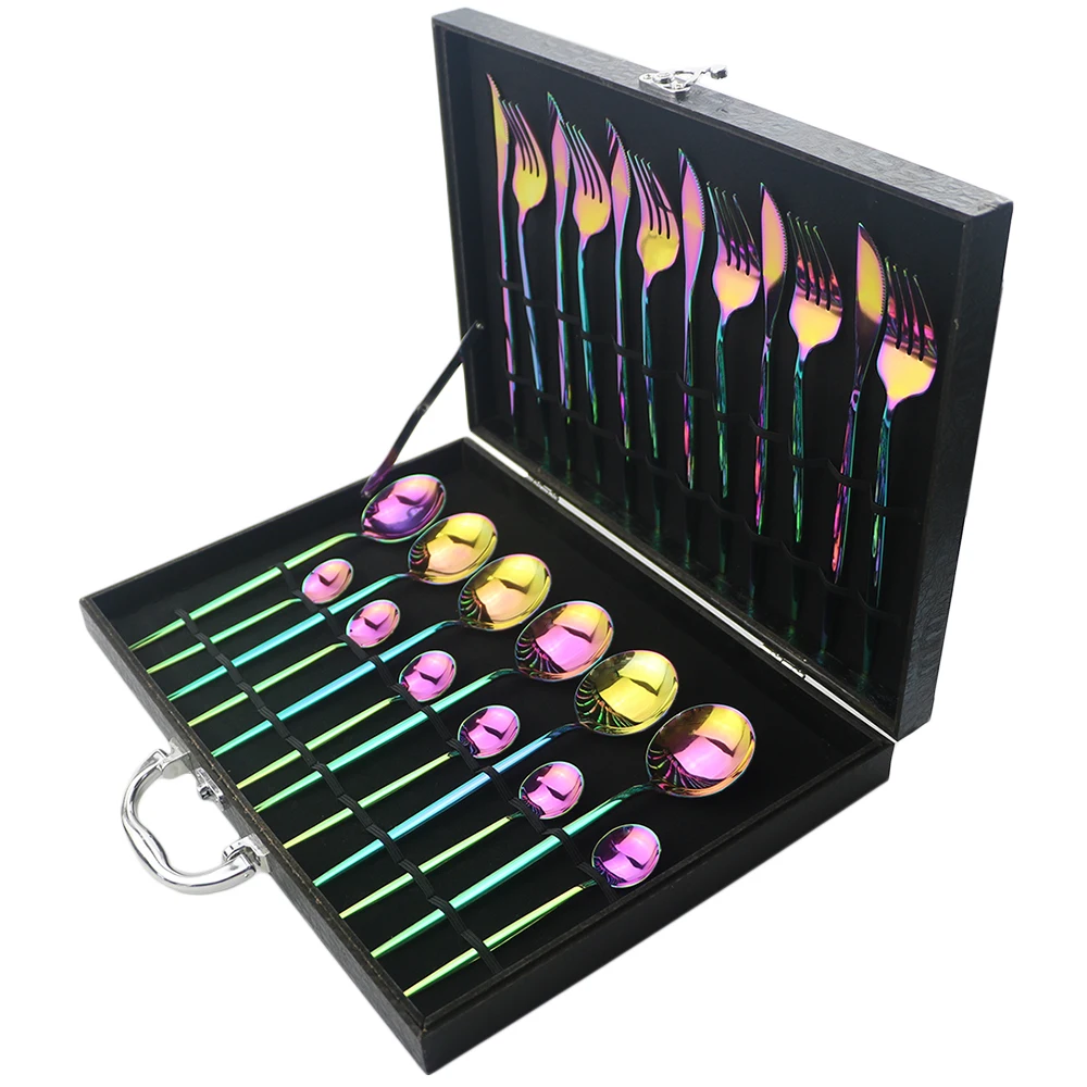 24 шт золотой набор посуды 18/10 нержавеющая сталь набор посуды нож вилка ложка столовые приборы набор посуды для мытья в посудомоечной машине набор столовых приборов подарочная коробка