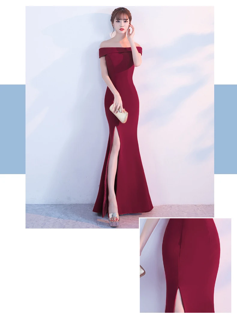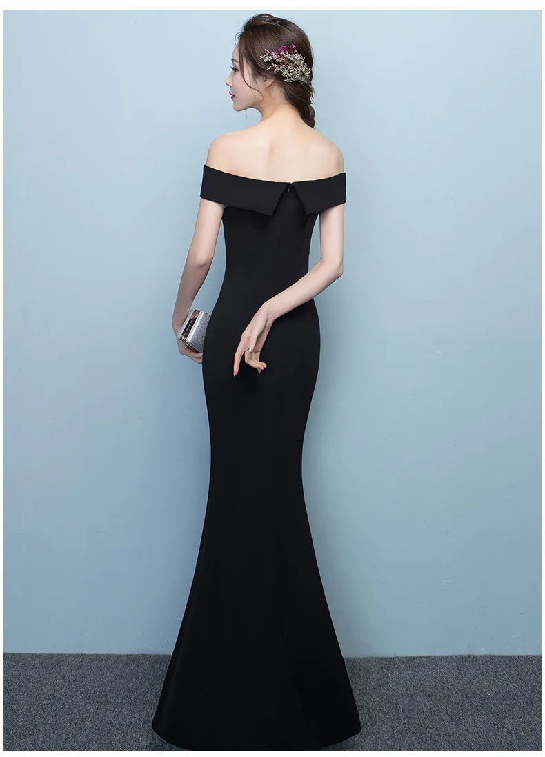 Вечернее платье, женское банкетное, новое, элегантное, длинное, сексуальное, черное, с открытыми плечами, тонкое, рыбий хвост, платье, элегантное, темпераментное, тонкое, для похудения Цвет: черный, красный, сапфирово-синий, бордовый, белый, королевский синий Ткань: платье из атласа; подкладка на груди