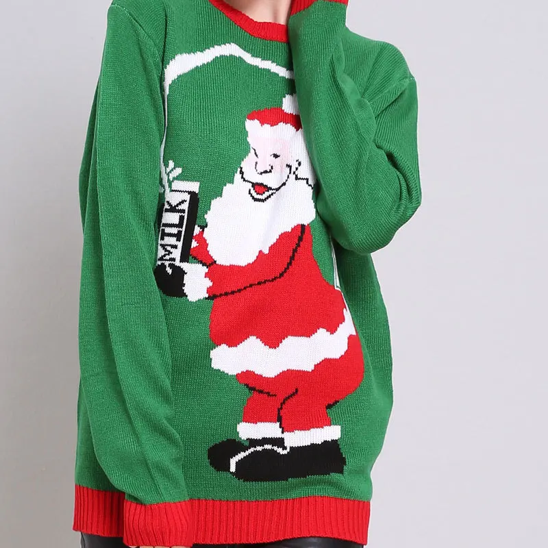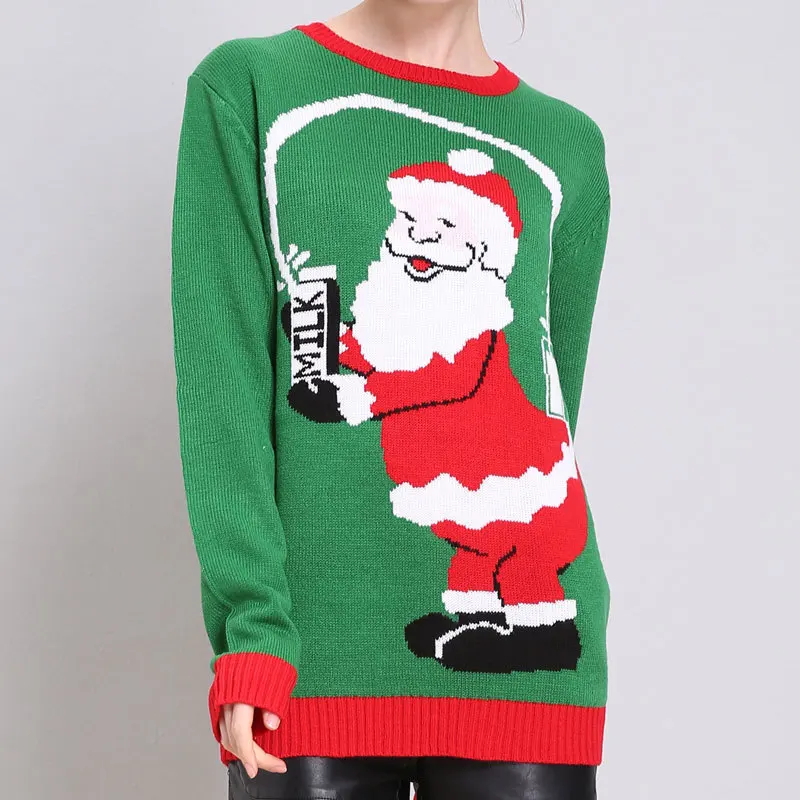 Уродливый женский свитер, Забавный Рождественский свитер зеленого цвета с Санта Клаусом, свободный осенний зимний пуловер с длинными рукавами, повседневный вязаный джемпер