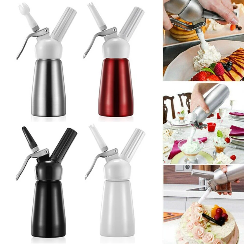 Изготовлен из алюминиевого материала, здоровый и прочный. Изысканный дизайн внешнего вида, мини-размер, а также легко чистить. С удобной ручкой, легко управлять. Аккуратно нажав на ручку, вы можете получить деликатный крем, подходящий для капучино-кофе, крем-напитков или приготовления торта. Отлично подходит для легкого приготовления крема, подходит для домашнего использования или десертного магазина Технические характеристики: Состояние на 100% абсолютно новый Материал: алюминиевый сплав, нержавеющая сталь Цвет: красный, черный, белый, серебристый Ёмкость: 250 мл Размеры: прибл. 20x8 см/7,87x3,15 дюймов Вес: прибл. 630 г Инструкции по использованию: 1. Налейте крем в резервуар для пены. 2. Затяните сливочную крышку. 3. Отвинтите крышку грузового интерфейса. 4. Поместите зарядное устройство крема в крышку (Этот продукт не включает зарядное устройство крема). Посылка включает в себя: 1 x Крем Диспенсер Щеточка для чистки-1 шт.; 1 xdust крышка 3 шт. Примечание: 1. Рекомендуется, чтобы крем не превышал одну третью емкости. 2. Возможна разница в 2-3% в соответствии с измерениями вручную. 3. Пожалуйста, обратите внимание на то, что размеры s светильник разница в цвете, это может быть связано с положением источника светильник и с настройками экрана.