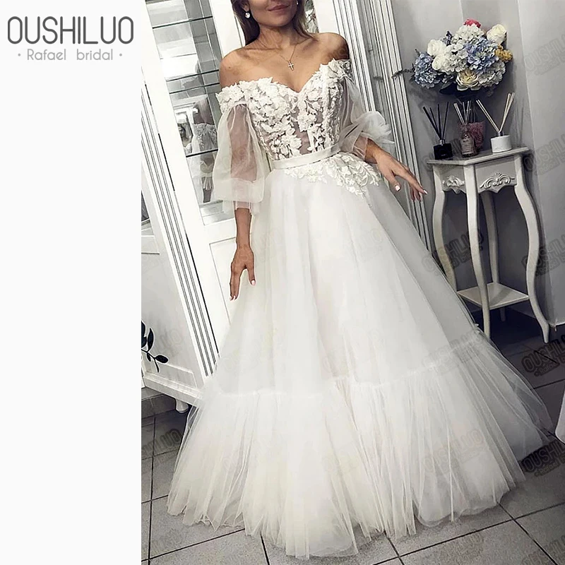 Отвесное Свадебное платье с длинным рукавом с открытыми плечами аппликация корсет пышные трапециевидные Свадебные платья с открытыми плечами свадебное платье es 2020