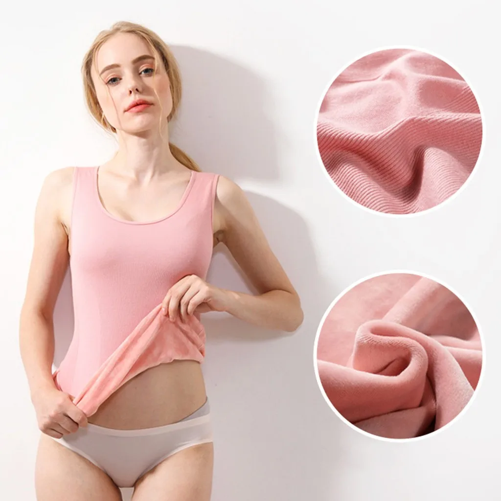 Теплый топ на бретелях для женщин Бесшовные эластичные underwearthermal нижнее белье, солидные безрукавки жилеты с текстильной отделкой из хлопка; Осень-зима дна на бретелях