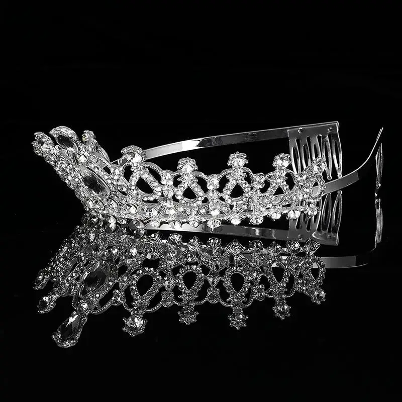 -Отличительная тиара в стиле барокко с гладкой сияющей поверхностью, очаровательные и изысканные хрустальные стразы с Королевской славой, которая обязательно сделает вас похожей на принцессу.