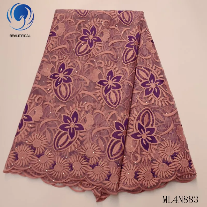 Красивые африканские французские кружева с камнями, вышивка, тюль, сетка, вечерние кружева, материал tissu, нигерийский стиль, 5 ярдов/партия, ML4N883