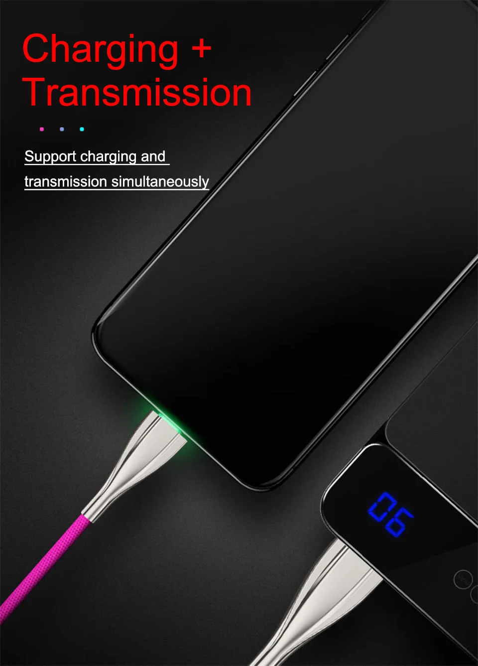 USB Type C Android кабель 5V2.4A Быстрая зарядка USB шнур цинковый сплав USB зарядное устройство Передача данных для Мобильный телефон 1 м провод