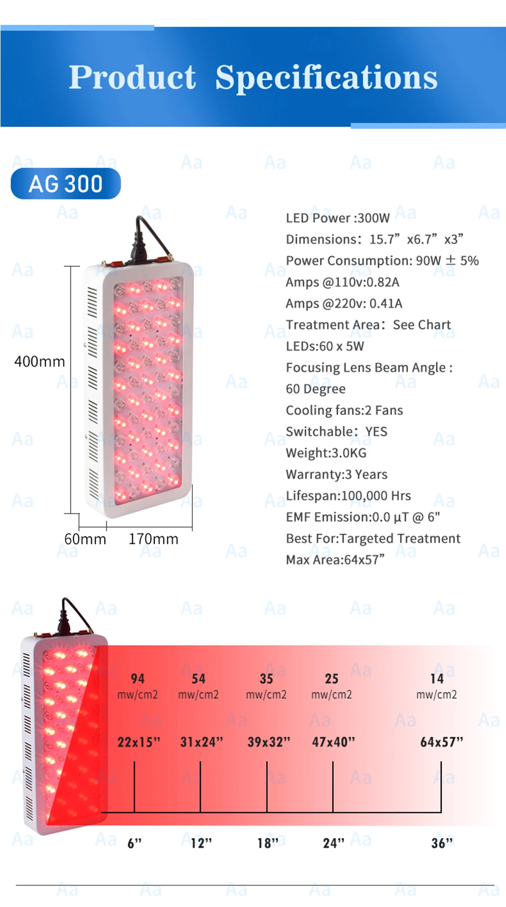 Светодиодный красный терапевтический светильник 300 Вт идеально подходит для кожи всего тела и тканевой терапии, которые делают 60 шт. на 5 Вт высокомощный светодиодный объектив, 60 или 90 градусов с высоким проникновением. Также эти панели с чистым красным 660нм, чистым ИК 850нм и популярным дизайном Red 660nm mix IR 850nm все три варианта, клиенты, которые могут выбрать тот, что вам нужно. 300 Вт с 2 переключателями вкл/выкл, красный светильник, ближний инфракрасный светильник, или красный и NIR светильник, это лучший и самый популярный. 300 Вт красный и NIR характеристики: -Количество СВЕТОДИОДНЫЙ: 60 шт. на 5 Вт -Длина волны: Красный 660нм и ИК 850нм; Чистый 660нм или 850нм -Способ работы: 2 включения/выключения -Напряжение: AC85 ~ 265 в -Частота: 50/60 Гц -Вес: 3,0 кг -Размеры: 400x170x60мм -Применение: для всего тела