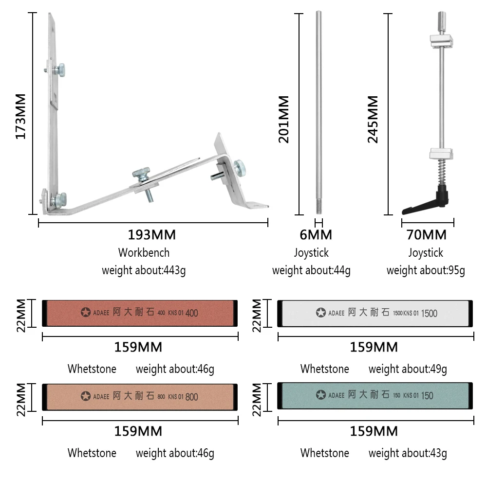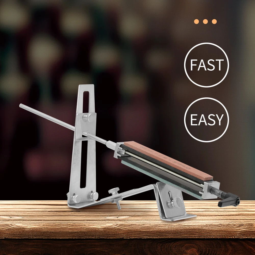 -Быстрый и простой способ заточить лезвие ножа. -Вся железная сталь. Никогда не поврежден. -Поставляется с 4 точильными камнями для различных ножей. -Изготовлен с дизайном безопасности, чтобы защитить ваши руки от повреждений -Замки легче затянуть винты вручную, вам не нужна отвертка! Никогда не трясется!