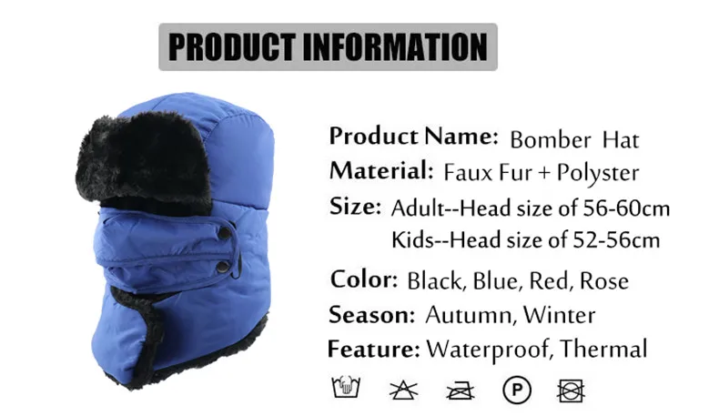 Информация о продукте: Материал: внешняя оболочка из полиэстера и внутренняя подкладка из мягкого искусственного меха Размер: для окружности головы 52-60 см Цвет: Есть serveral Цвет s можно выбрать Характеристики: очень теплый, теплый, ветрозащитный, мягкий, удобный Использование: Зимние виды активного отдыха, такие как катание на лыжах, сноуборде, Пешие прогулки, охота
