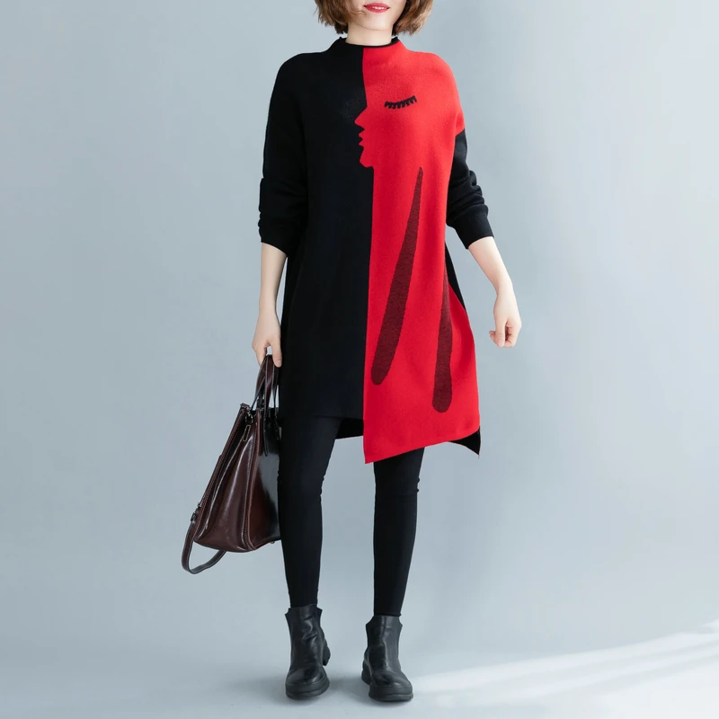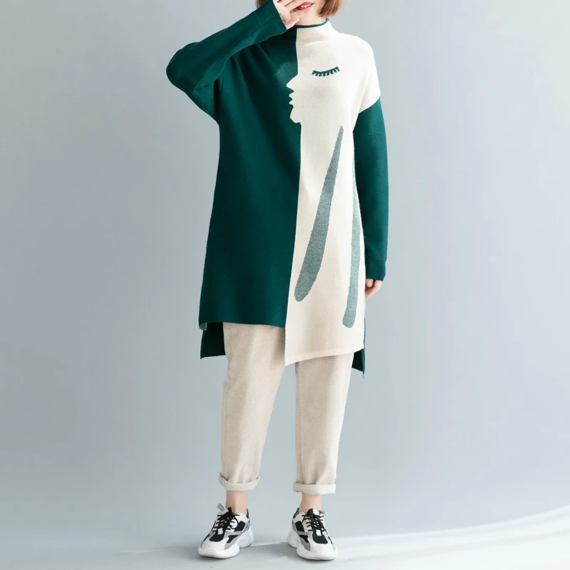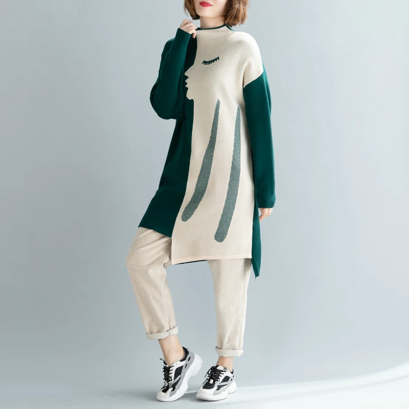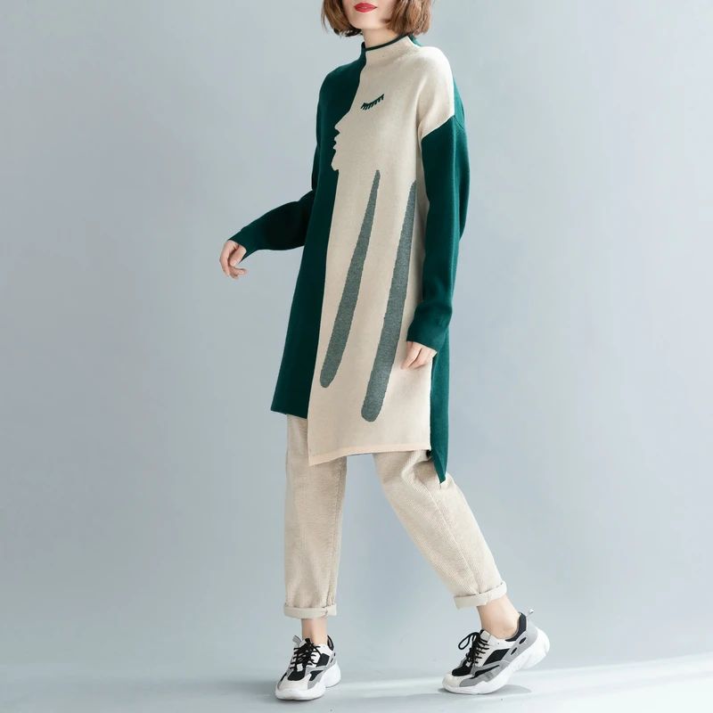 Женский трикотажный свитер в рубчик Gaono с V-образным вырезом и ярким принтом