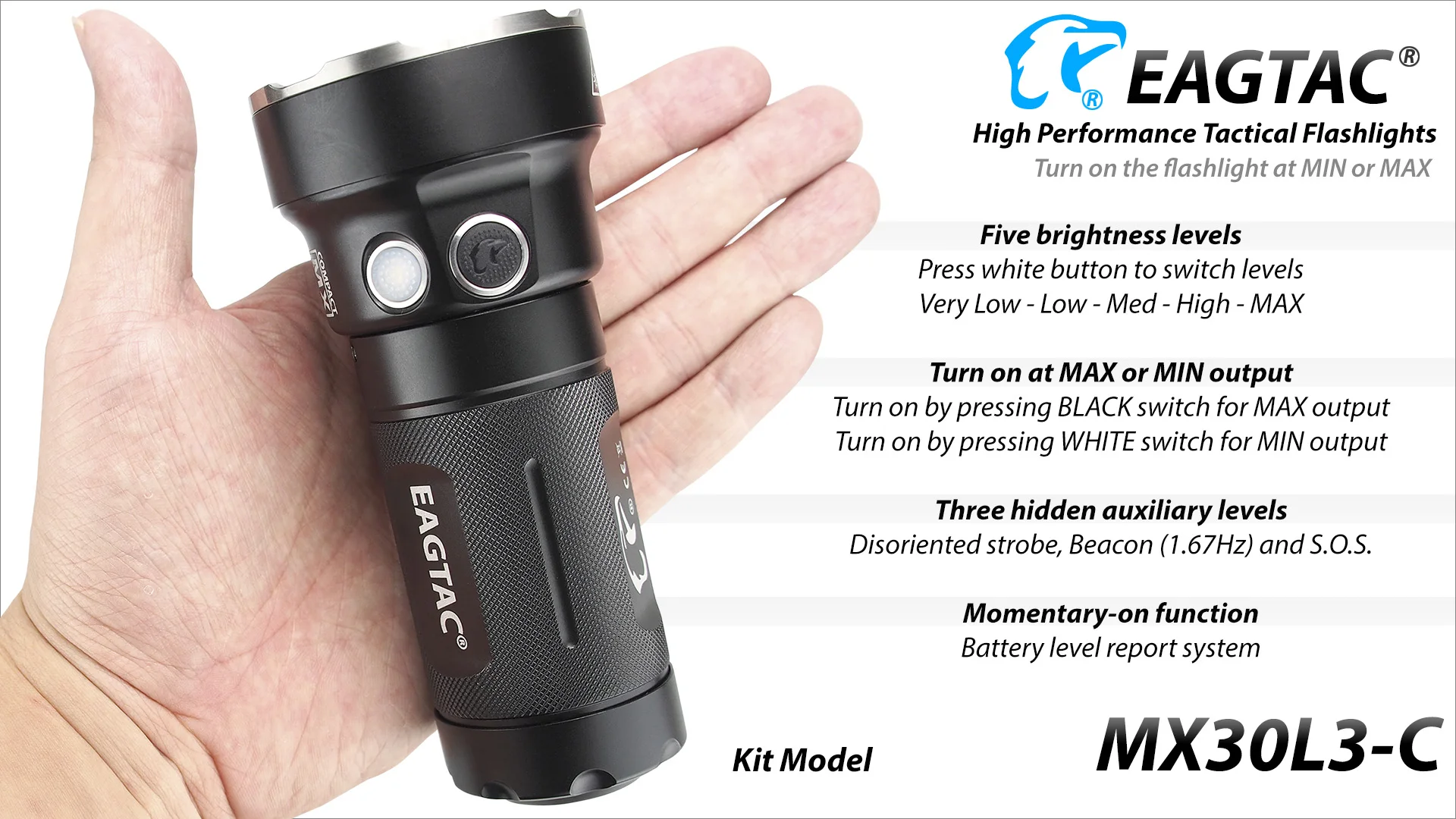 (Например: если вы хотите включить фонарик на 3-м уровне, просто нажмите и отпустите белый кнопочный переключатель три раза.)