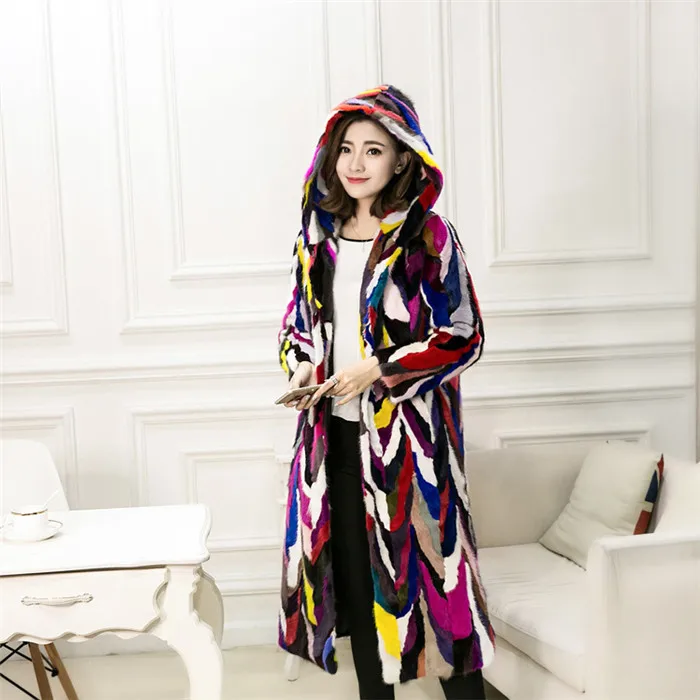Шуба женская из натурального Лисьего меха с капюшоном разноцветная любой размер