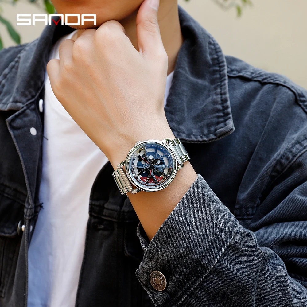 SANDA, кварцевые мужские часы, наручные часы, черный браслет из нержавеющей стали, модные повседневные часы, мужские часы, мужские часы, relogio masculino 1025