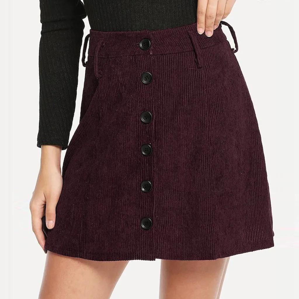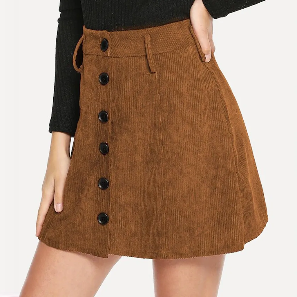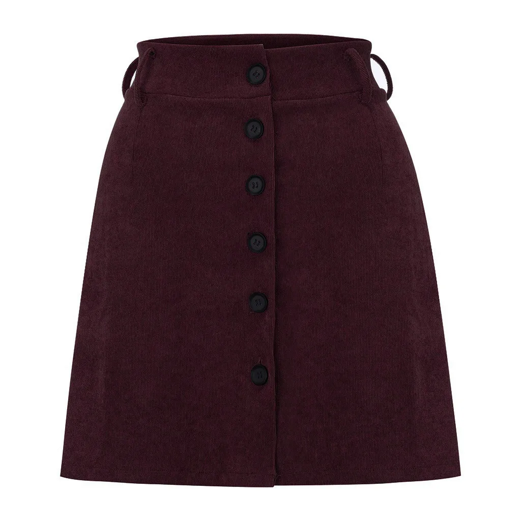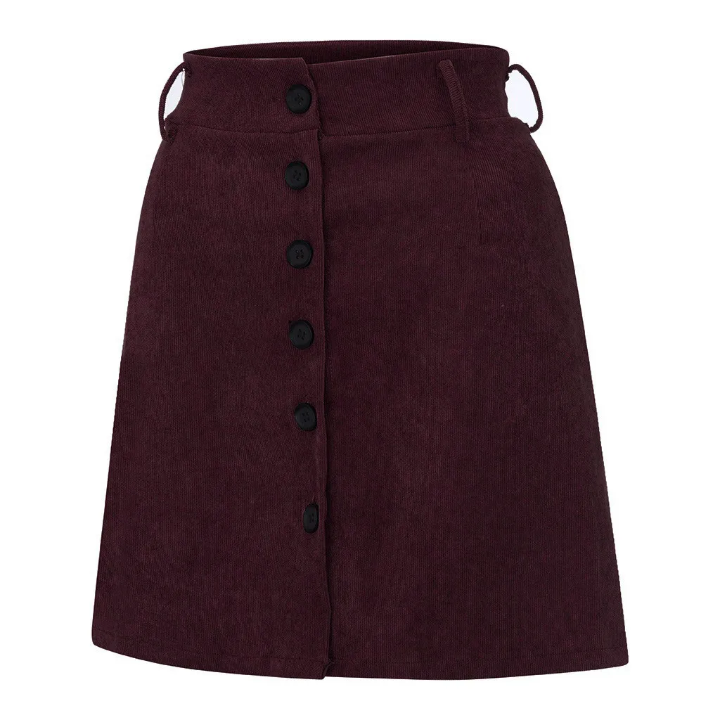 New Arrival Corduroy Skirt Summer High Waist Button Fashion Girls Sexy Uniform Mini Skirt Red Black Brown S/M/L/XL