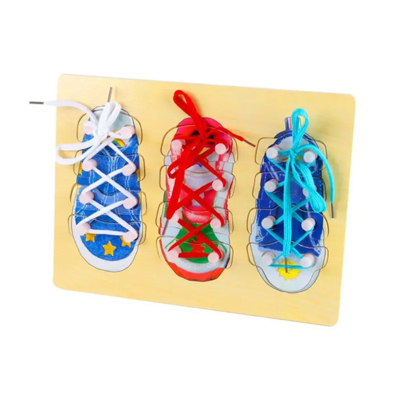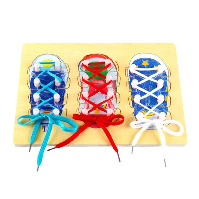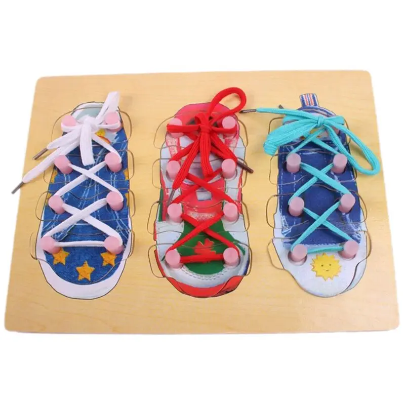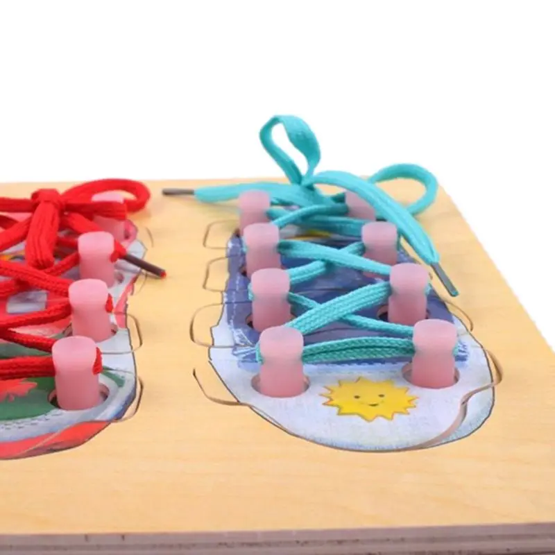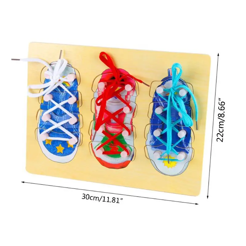 Игрушка для базовых навыков: Эта обувная игрушка со шнуровкой обладает 2 основными навыками: шнуровка и завязывание. Она помогает детям развивать мелкую моторику, зрительно-моторную координацию, гибкость тренировок пальцев и решение проблем. Инструмент для раннего обучения: Отличное учебное пособие для учителей и родителей детских садов, чтобы обучить детей основным навыкам завязывания шнурков и поощрения независимости. Деревянная игрушка для обуви со шнуровкой, игрушка для мелкой моторики, настольная игра для детей.
