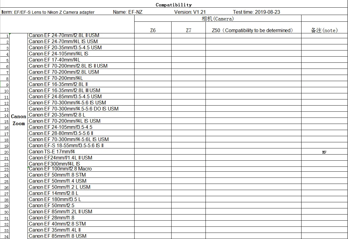 2. After installing EF-NZ adapter, please set the lens to AF mode if the AF function is required;