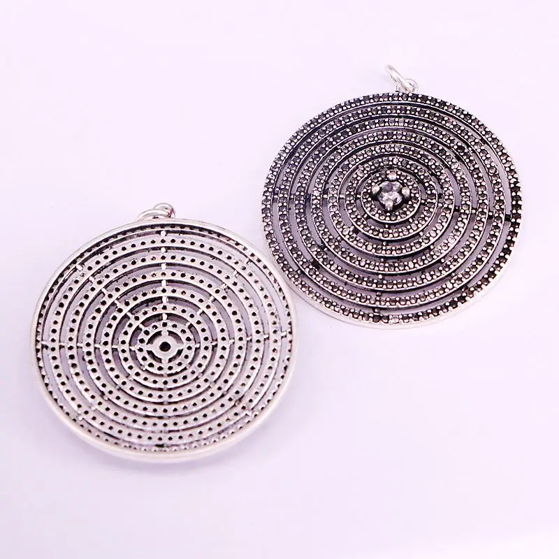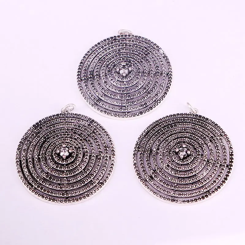 35 мм, Античная Серебряная черная CZ микро проложить круглые подвески, модные ювелирные изделия, металлическая цепочка, элегантный винтажный подарок для женщин и мужчин
