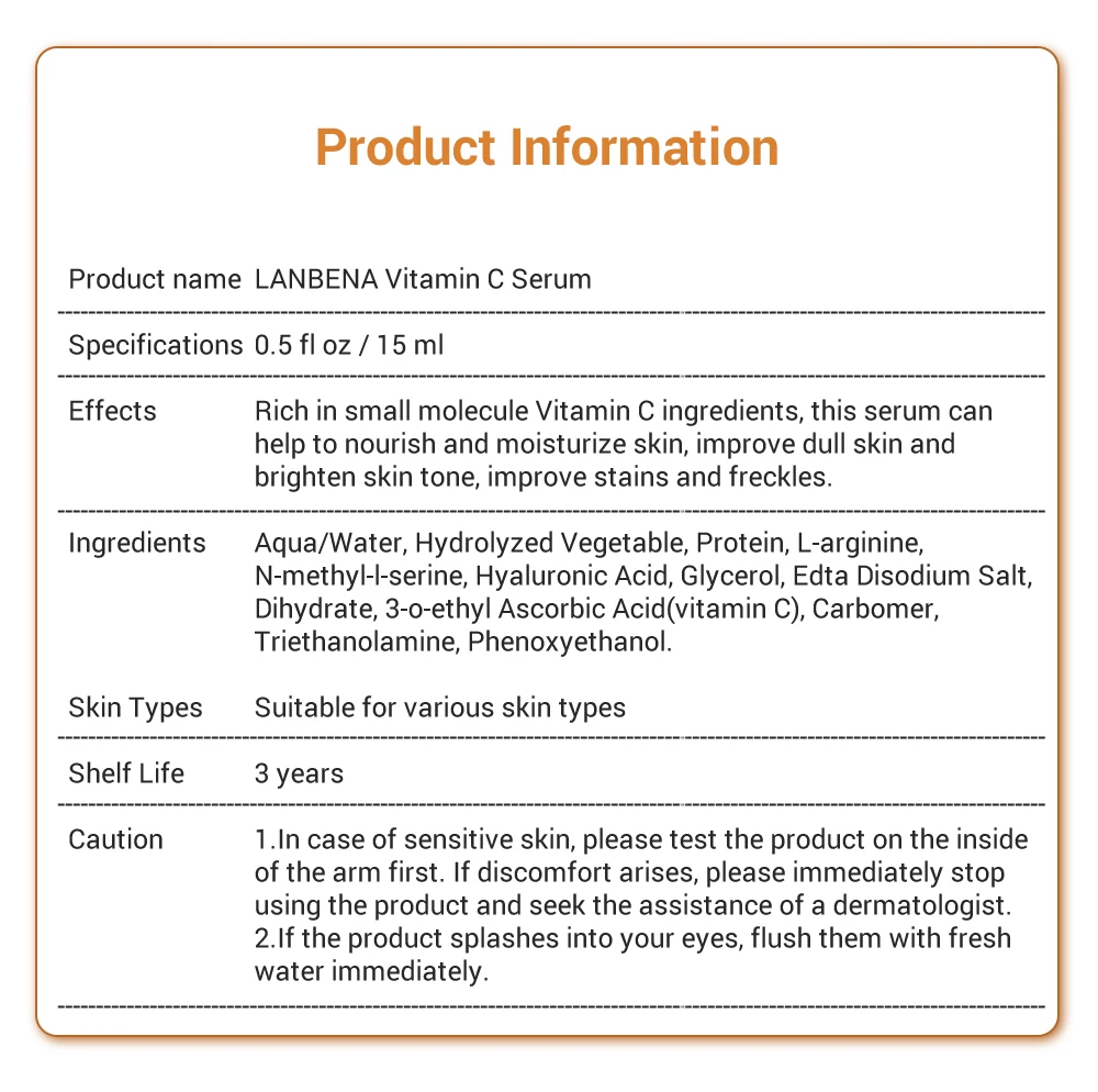 LANBENA Витамин С Сыворотка для лица, Отбеливающая увлажняющая сыворотка для лица, отбеливающая сыворотка, уход за кожей, уменьшает меланин крем для лица