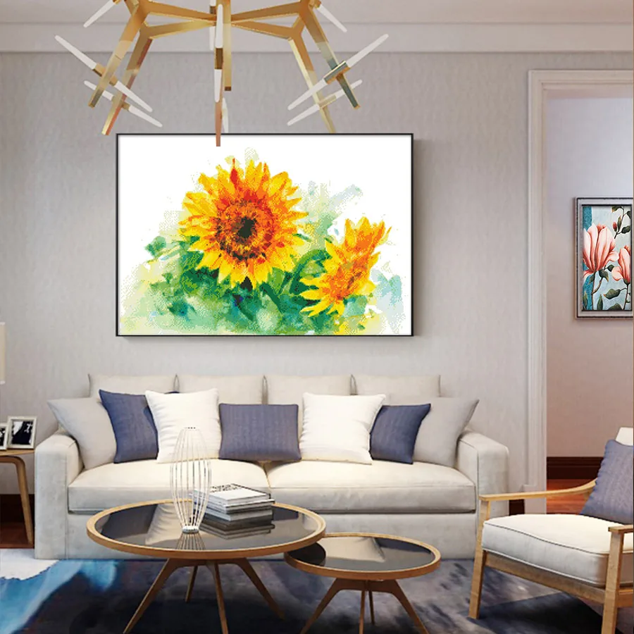 Наборы для вышивки крестиком, наборы для рукоделия 11CT, водорастворимые холщовые узоры 14CT, цветочный стиль, sunflowers-NCMF219