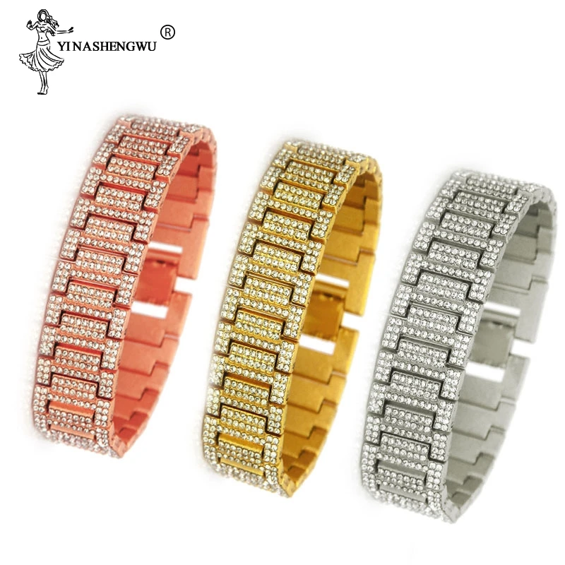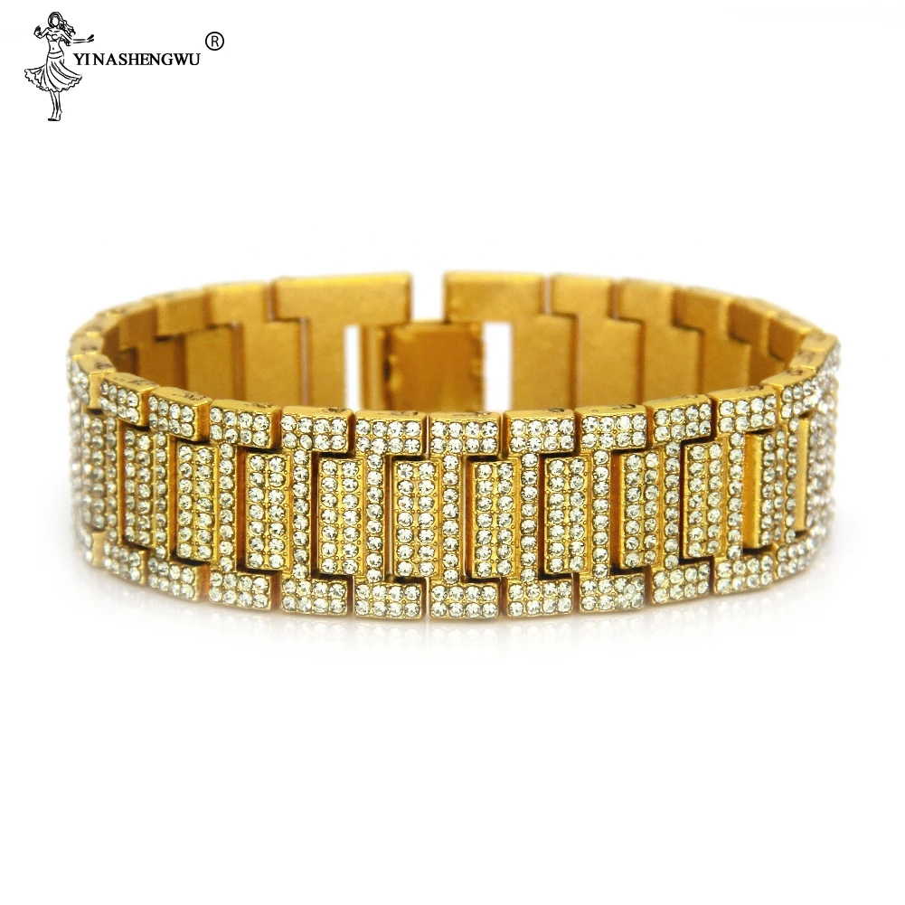 Браслет в стиле хип-хоп, 21 мм, со стразами, Iced Out, с блестящими золотыми и серебряными часами, звено цепи, браслеты, браслеты для мужчин, рэппер, ювелирные изделия, Pulsera