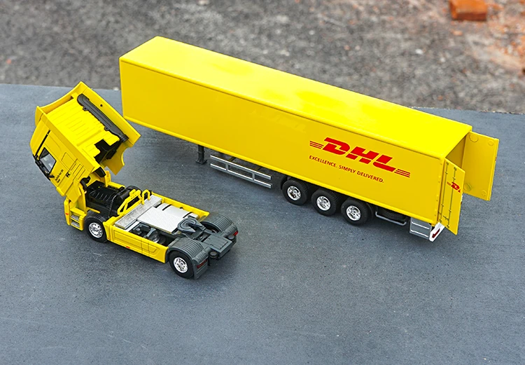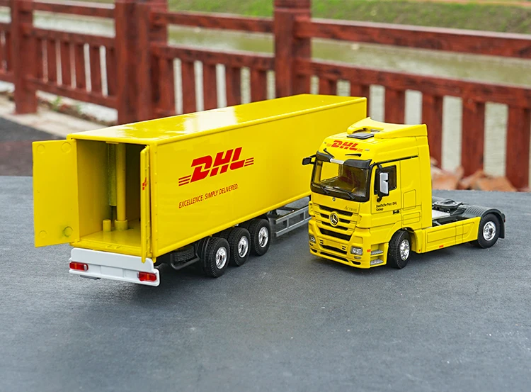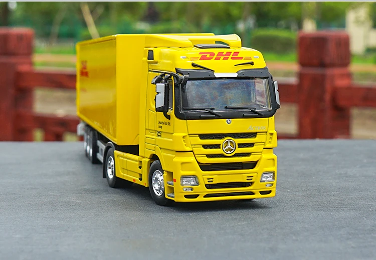 1:50 Mercedes-Benz грузовики с контейнером, DHL модель грузового автомобиля Сырье: цинковый сплав + ABS. Двери открываются, задняя дверь открывается Аутентичные детали интерьера и экстерьера. Рулевое колесо и передние колеса соединены Тонкое мастерство Экологически чистая живопись Размер изделия: 360 мм * 65 мм * 90 мм