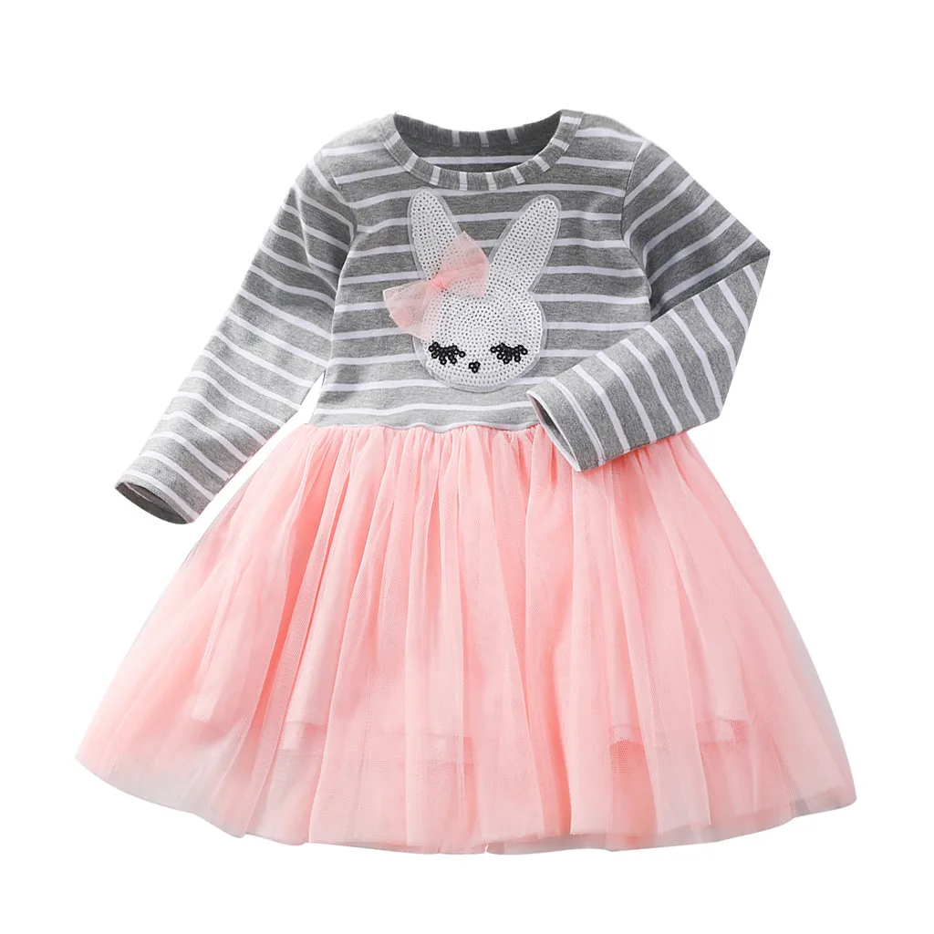 Платье принцессы из тюля в полоску с милым кроликом в стиле пэчворк для девочек-подростков