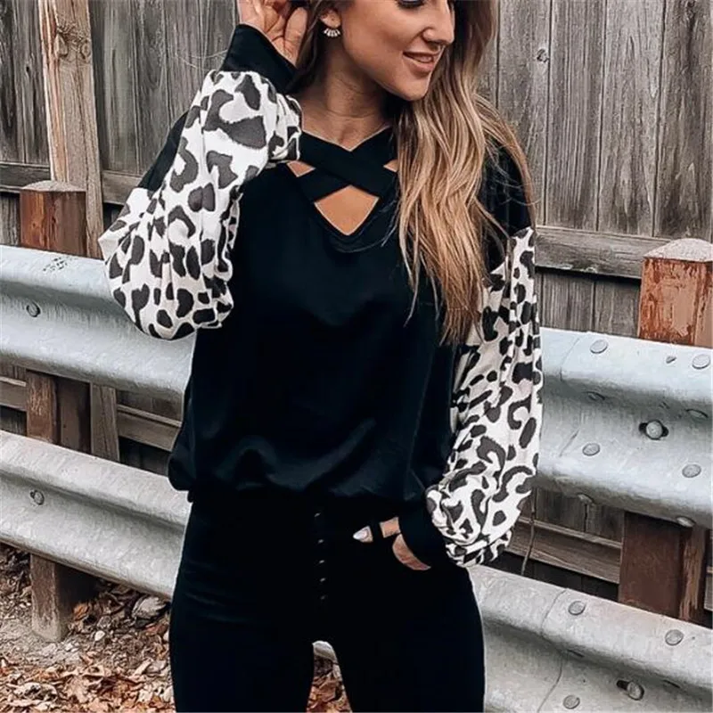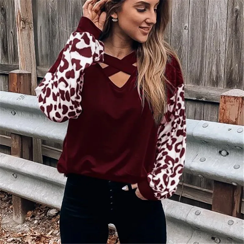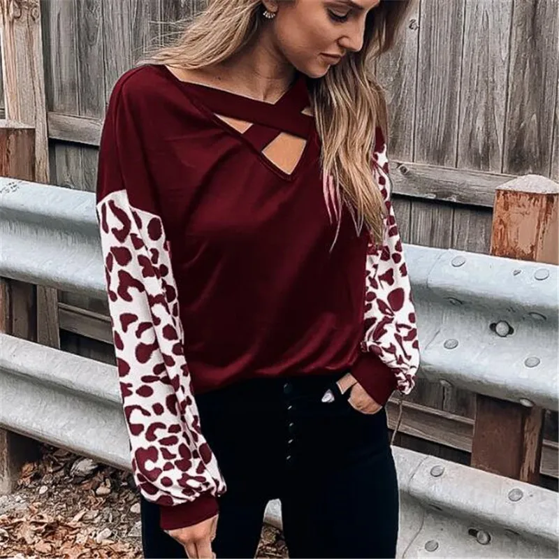 Сексуальный женский леопардовый Топ с длинным рукавом, футболка с v-образным вырезом, осенняя женская футболка, Весенняя мягкая теплая свободная футболка, модные футболки, топы!