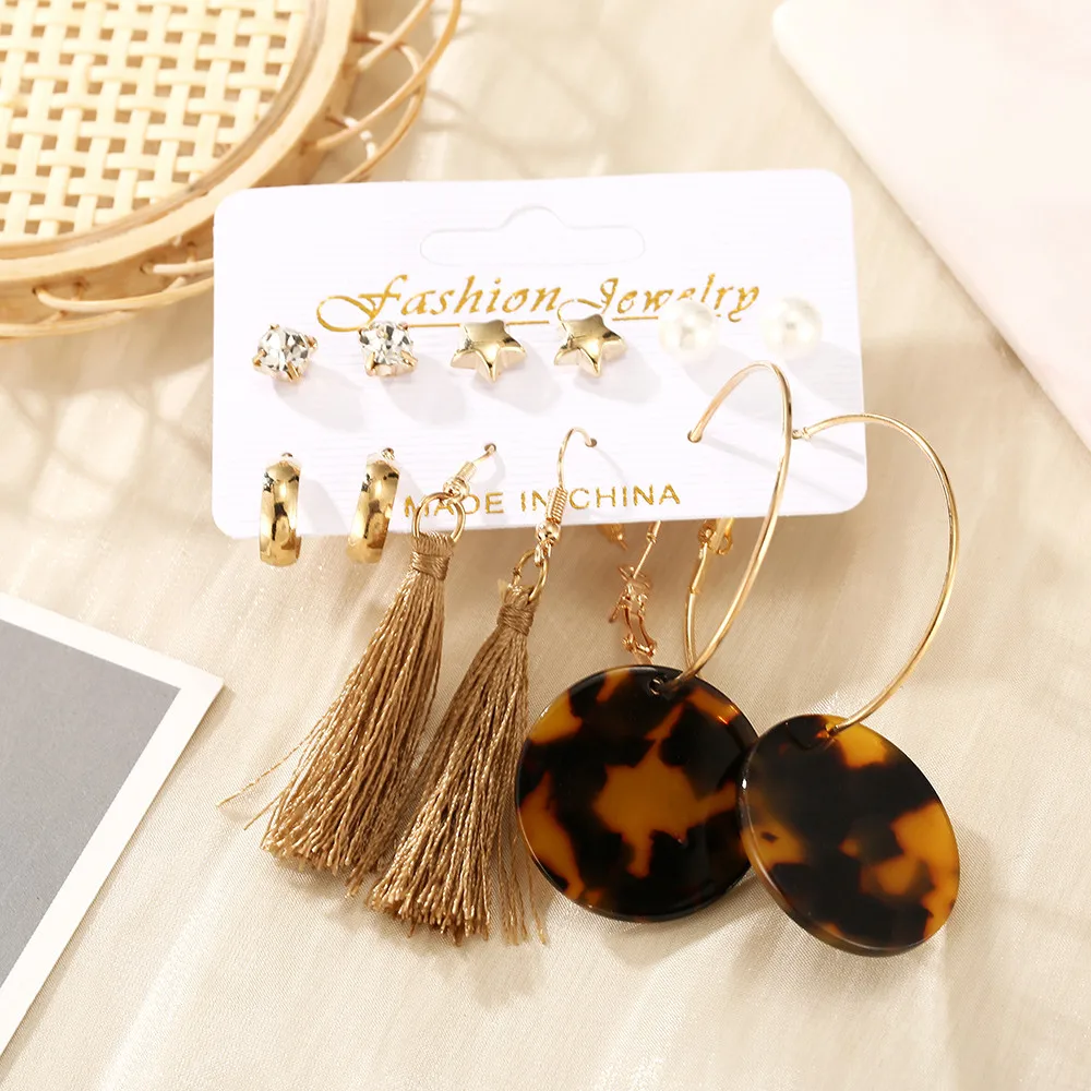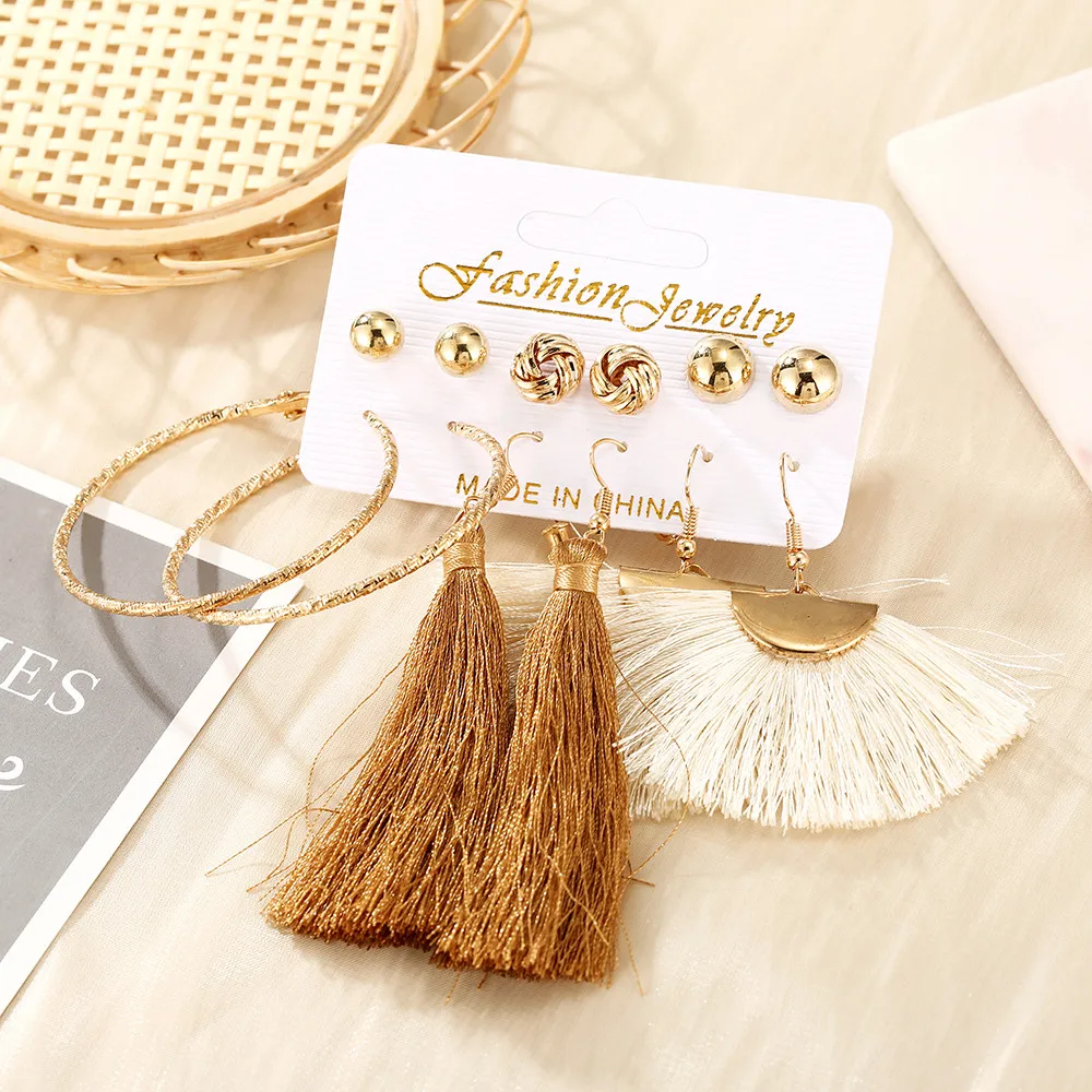 Набор Серьги кисти в этническом стиле геометрические серьги-гвоздики
