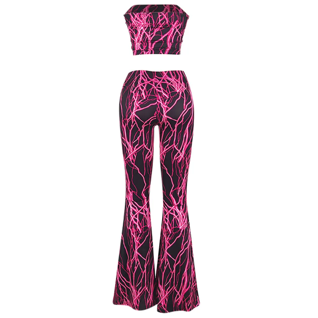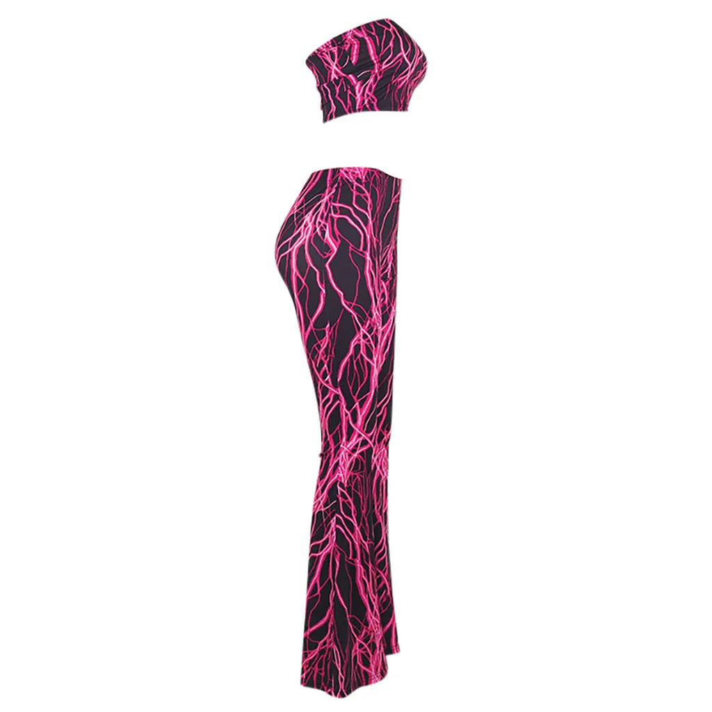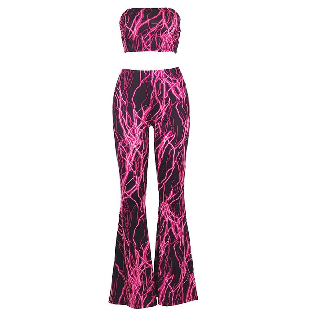 Особенности:Бандо, Высокая талия, Печать, Расклешенные, сексуальные, свободные, комплект брюкПовседневная одежда,Уличная одежда,СексуальныйКомплект.