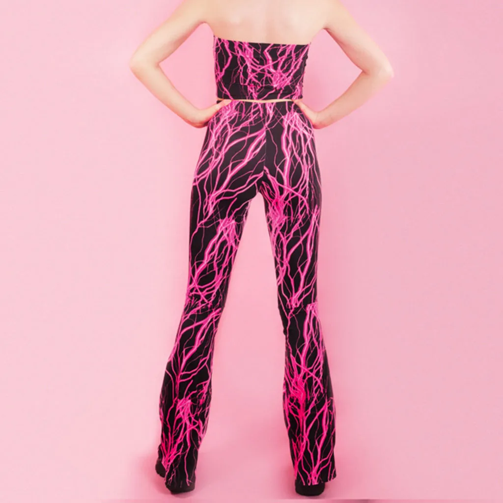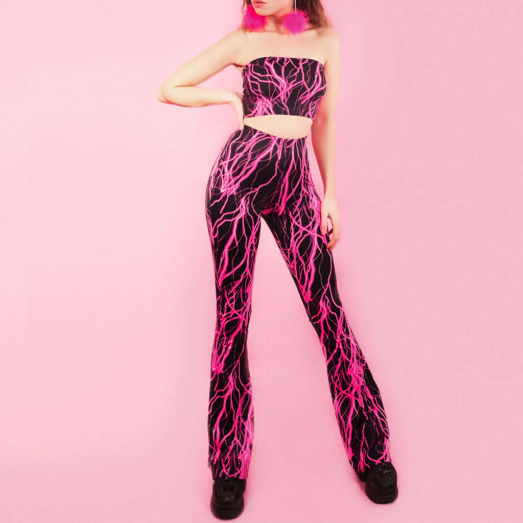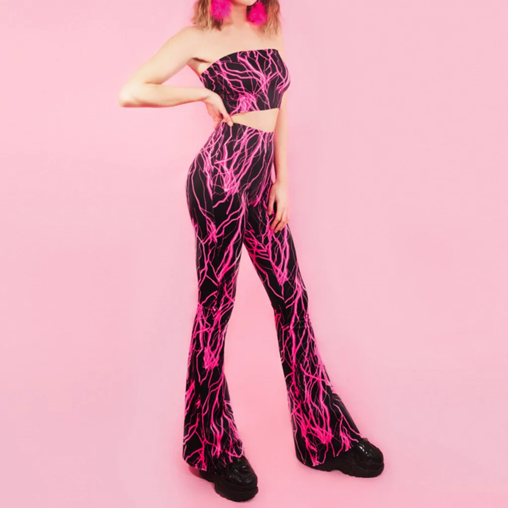 Особенности:Бандо, Высокая талия, Печать, Расклешенные, сексуальные, свободные, комплект брюкПовседневная одежда,Уличная одежда,СексуальныйКомплект.