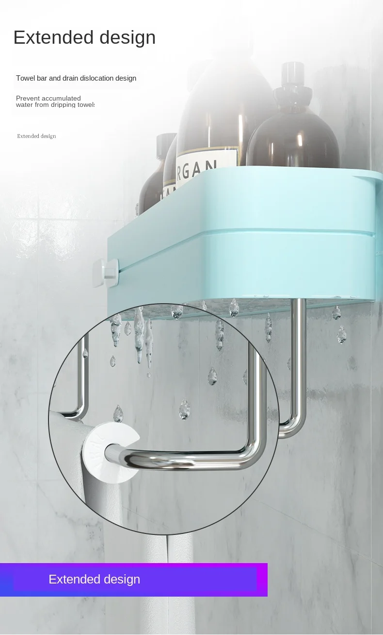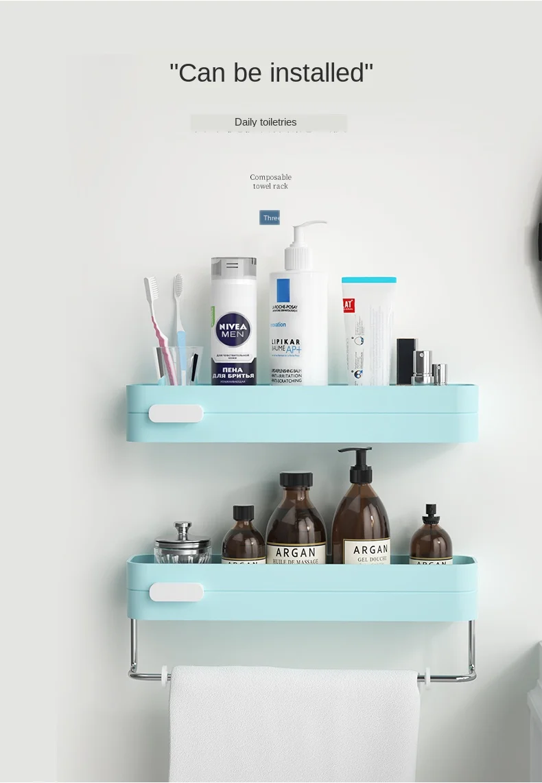 Настенная Двухуровневая полка для ванной комнаты 6 цветов 50 см стеллаж хранения