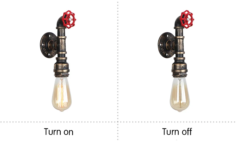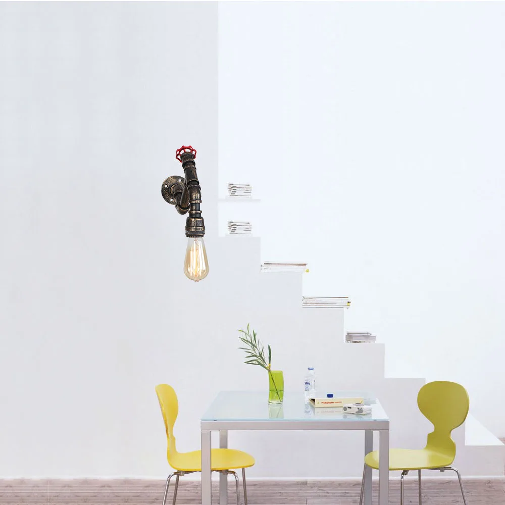 Настенная лампа для водопровода Источник питания: 90-260 в перем. Тока Размер: как на картинке Патрон лампы: E27 Максимальная мощность: 40 Вт Лампа в комплект не входит Стиль: американский винтажный Ретро Применение: бар, кофейня, ресторан, гостиная, кухня и так далее