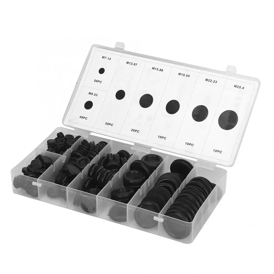 170 шт Черный закрытый уплотнительное кольцо Электрический кабель проводки Комплект прокладок резиновый Набор прокладок с пластиковой коробкой