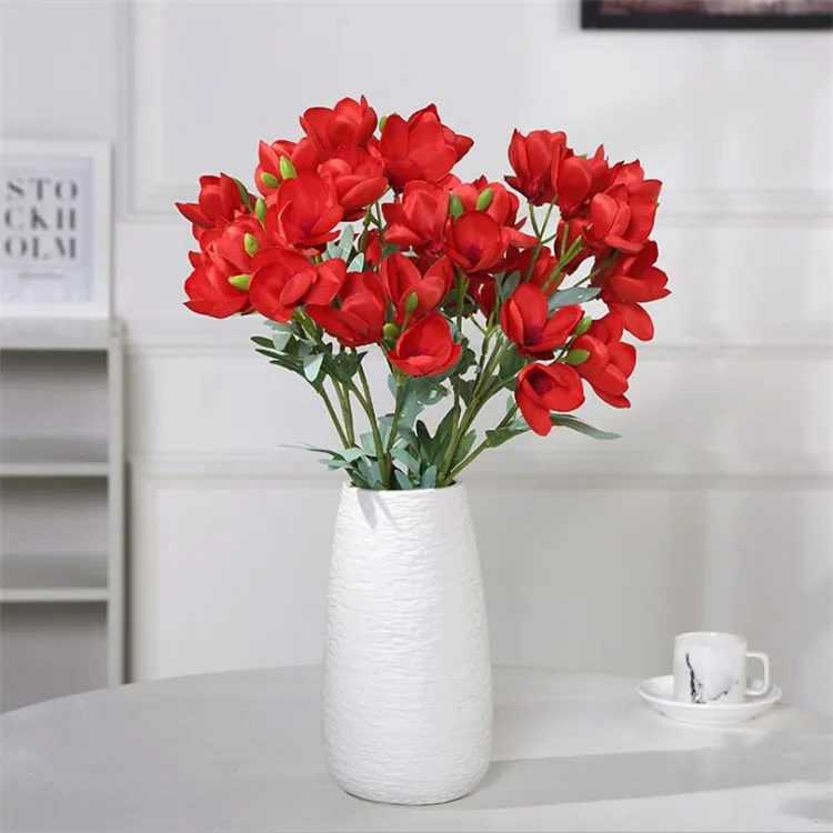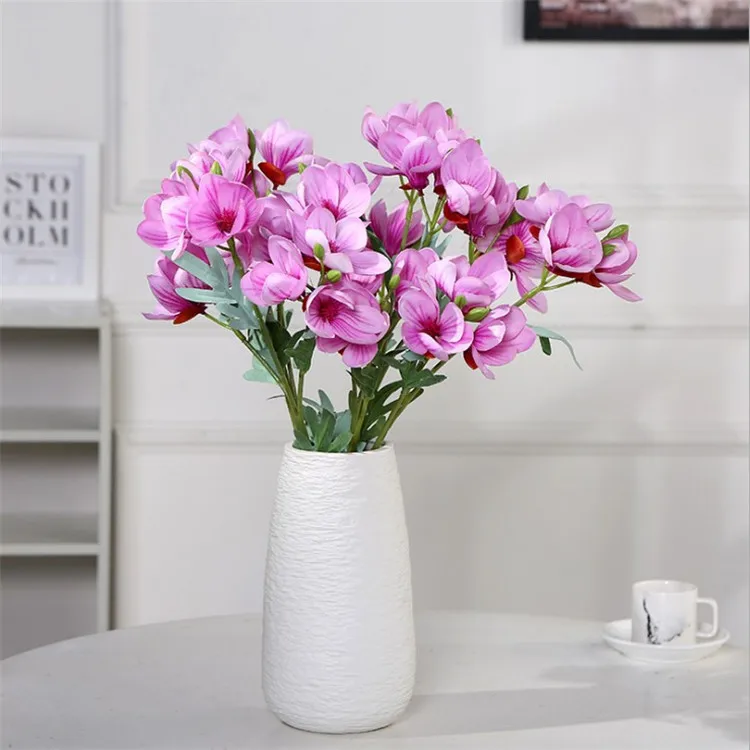 Информация о товаре: искусственные цветы Состояние: новый бренд Материалы: пластик и ткань Общая длина: приложение. 60 см/23,62" Цвет: белый, розовый, сиреневый, фиолетовый, красный 3 происходит за штуку Ваза не входит в комплект Пожалуйста, обратите внимание, для службы авиапочты, длина ограничена, Так что для этой статьи, мы должны согнуться при упаковке, спасибо.