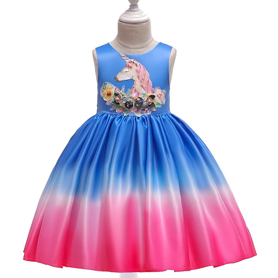 Название: VOGUEON/Вечерние платья принцессы с единорогом для девочек; Нарядные платья без рукавов с аппликацией в виде голубой розы; Детский костюм для дня рождения