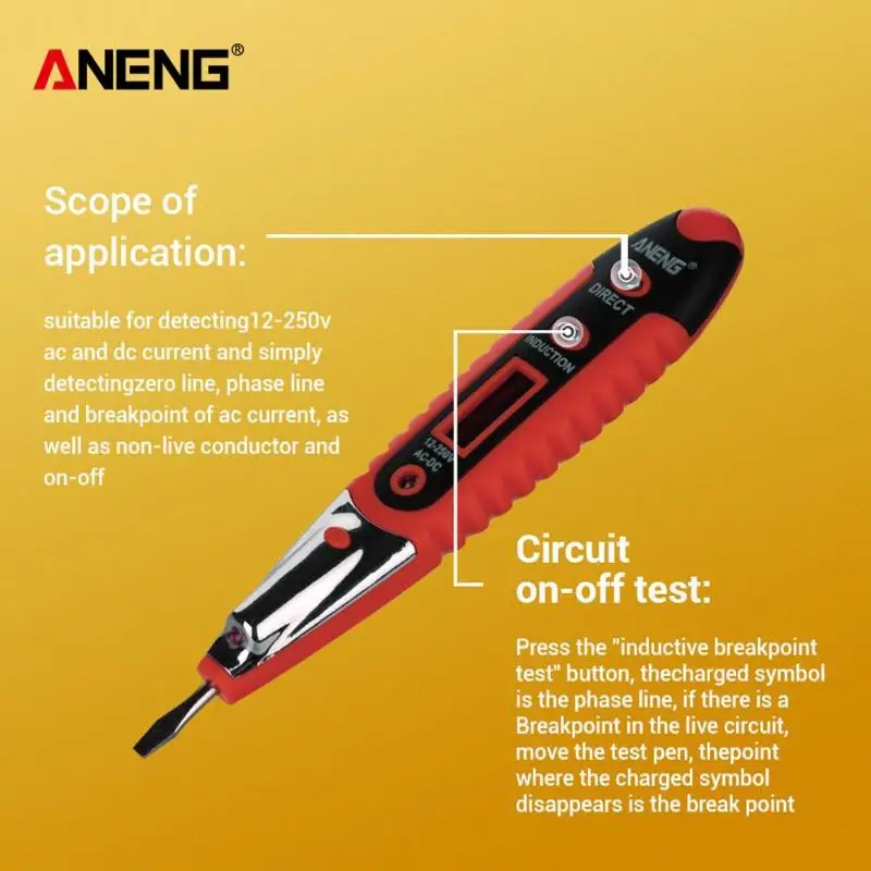 ANENG 12-250 В переменного/постоянного токаЦифровой ЖК-дисплей тестер напряжения ручка многофункциональный детектор напряжения тест er электрическая ручка-отвертка