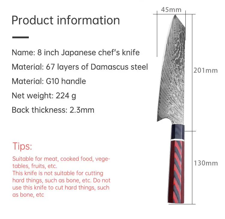Ультра острое лезвие: японское VG10 Дамасская сталь Высокоуглеродистая сталь, легко нарезает продукты.