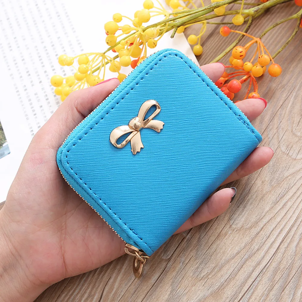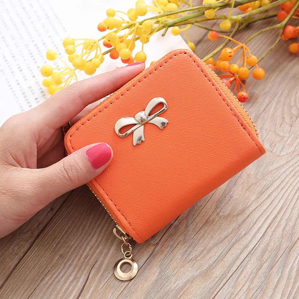 Женская модная одноцветная сумка на молнии с бантом, маленькая квадратная сумка для монет