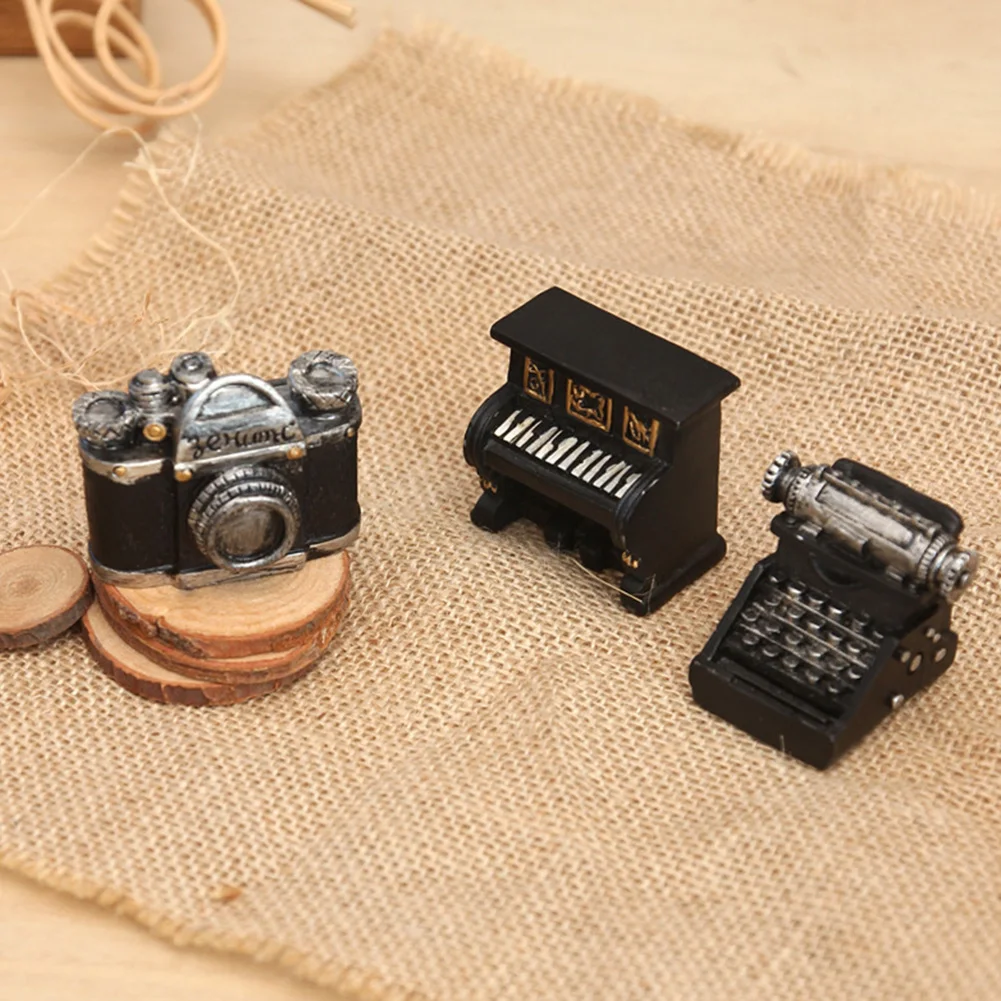 Антикварная полимерная машинка, камера, статуэтка пианино, скульптура, украшение дома