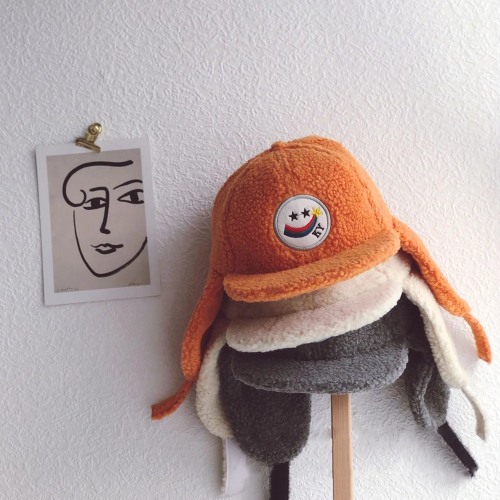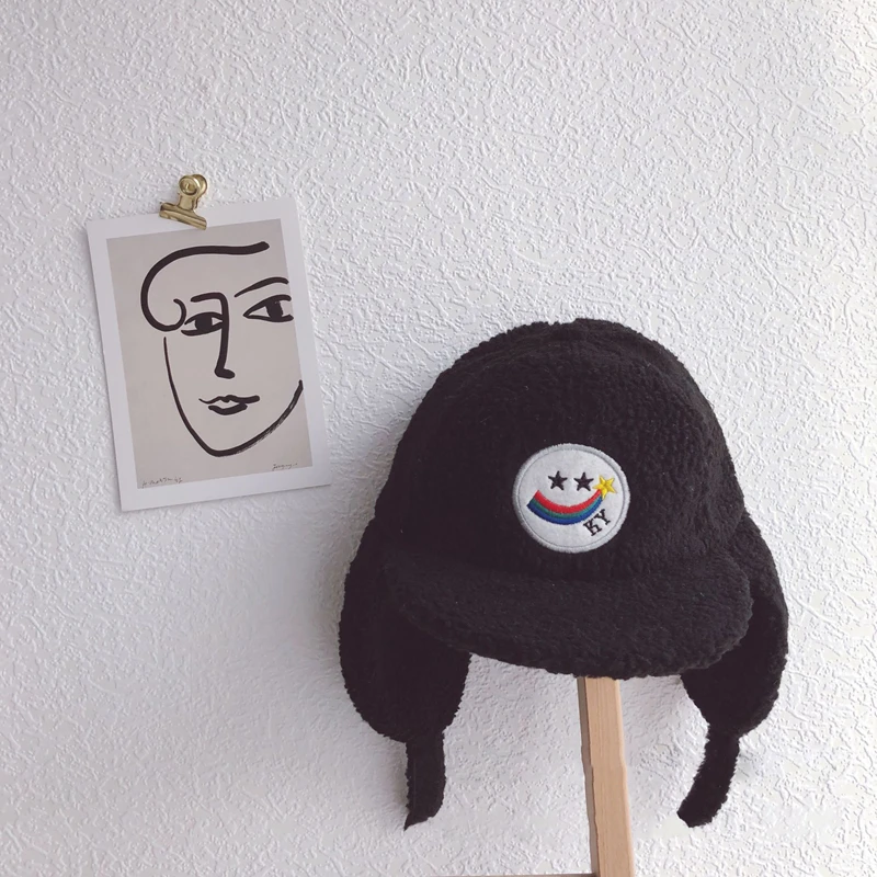Детские шапки, зимние детские бейсболки, теплые наушники для детей, кепка Lei Feng, кашемировая Кепка для мальчиков и девочек, шапка с вышивкой смайлика