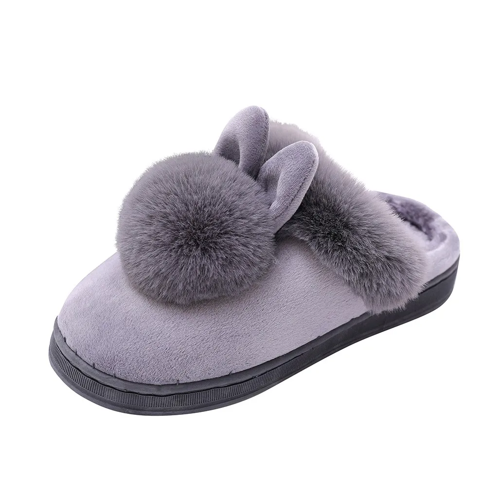 Women's Winter Home Furry Rabbit Ears Indoor Slippers Soft Comfort Footwear Shoes