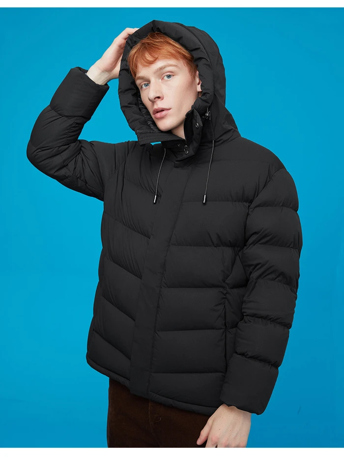 Мужской пуховик с капюшоном длинный зимний ватным тампоном и пальцами-ножницами