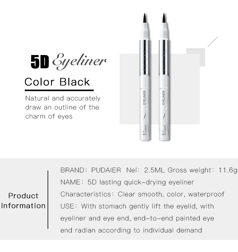 Подводка для глаз 5D Цвет черный Естественно и точно нарисуйте контур очарования глаз Информация о продукте Бренд: pudaier Название: 5D стойкая быстросохнущая подводка для глаз Характеристики: прозрачная гладкая, цветная, водонепроницаемая Использование: с желудком аккуратно приподнимите веко, с подводкой для глаз и концом для глаз, от конца до конца окрашенные лучи для глаз в соответствии с индивидуальным спросом