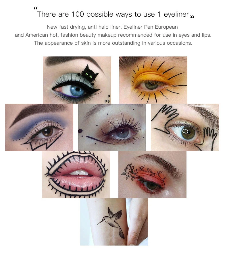 Есть 100 возможных способов подводки для глаз ue 1 Новая быстрая сушка, анти-halo лайнер, Eeyliner ручка Европейская И американский горячий, модный косметический макияж, рекомендованный для ue в области глаз и губ Внешний вид кожи является более выдающимся в различных случаях
