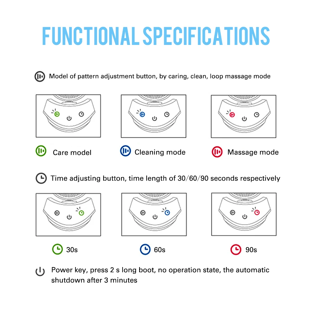 Режимы: три режима, 3 силы вибрации, 30 с/60 с/90 с