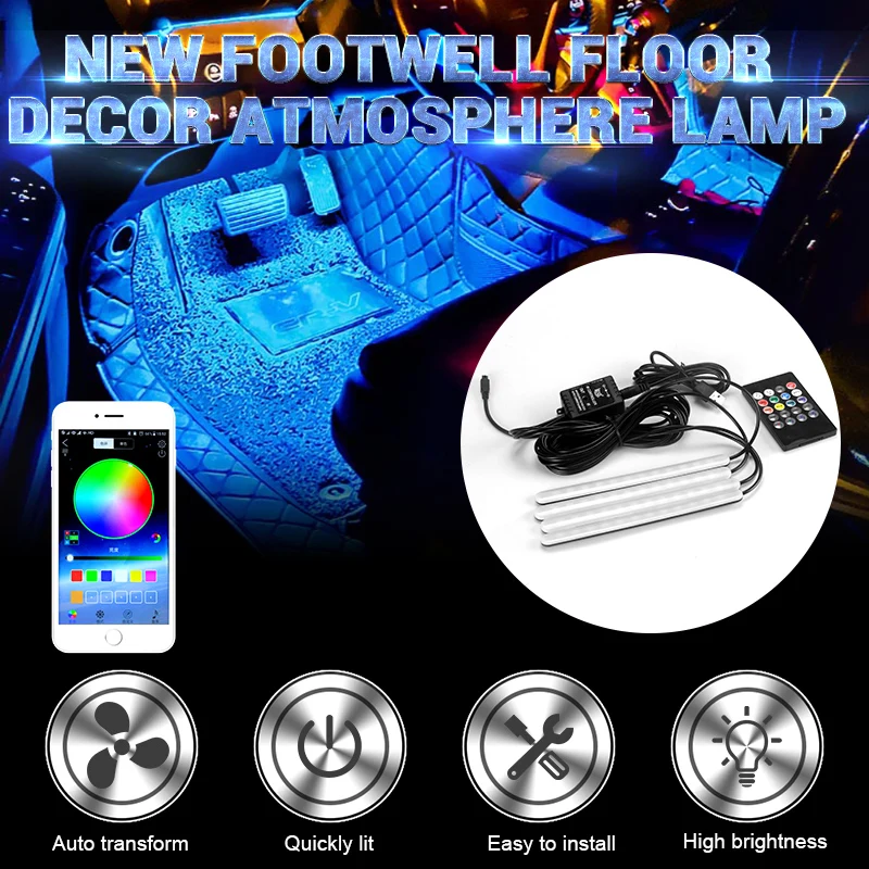 Новый светодиодный напольный светильник для салона автомобиля RGB музыка Голосовое управление приложение траектория напольный светильник полоса дистанционное управление 5В 12В
