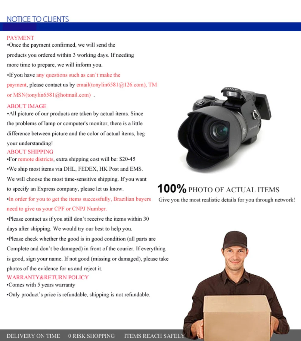 - Товар обычно отправляется через FedEx, DHL или SF EXPRESS,Номер отслеживания будет предложен в течение 3 дней).