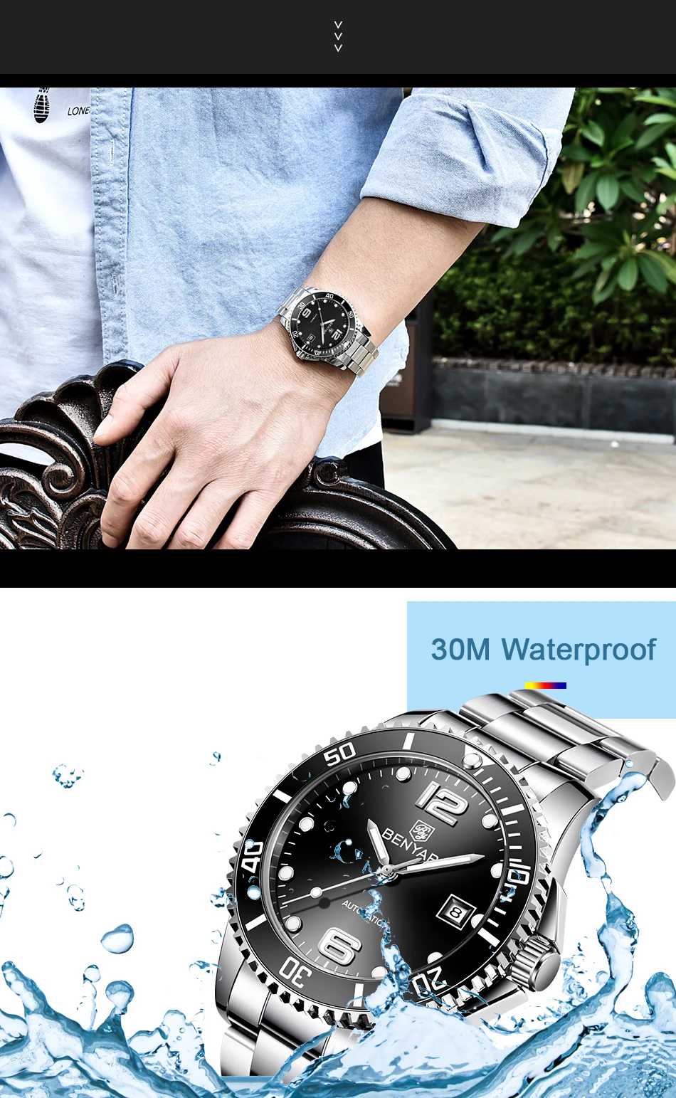 BLIGER 40 мм черный Nologo циферблат часы керамика вращающийся ободок светящиеся знаки