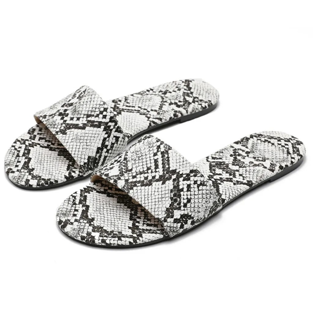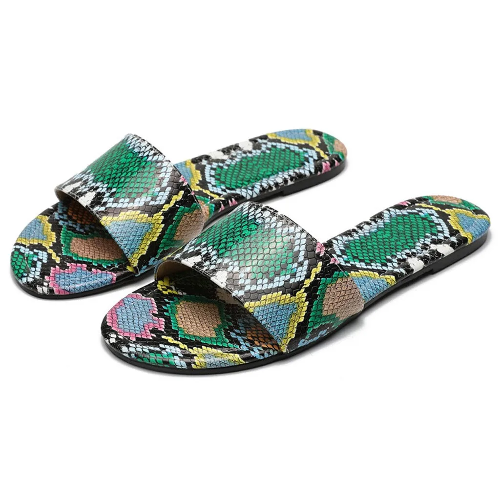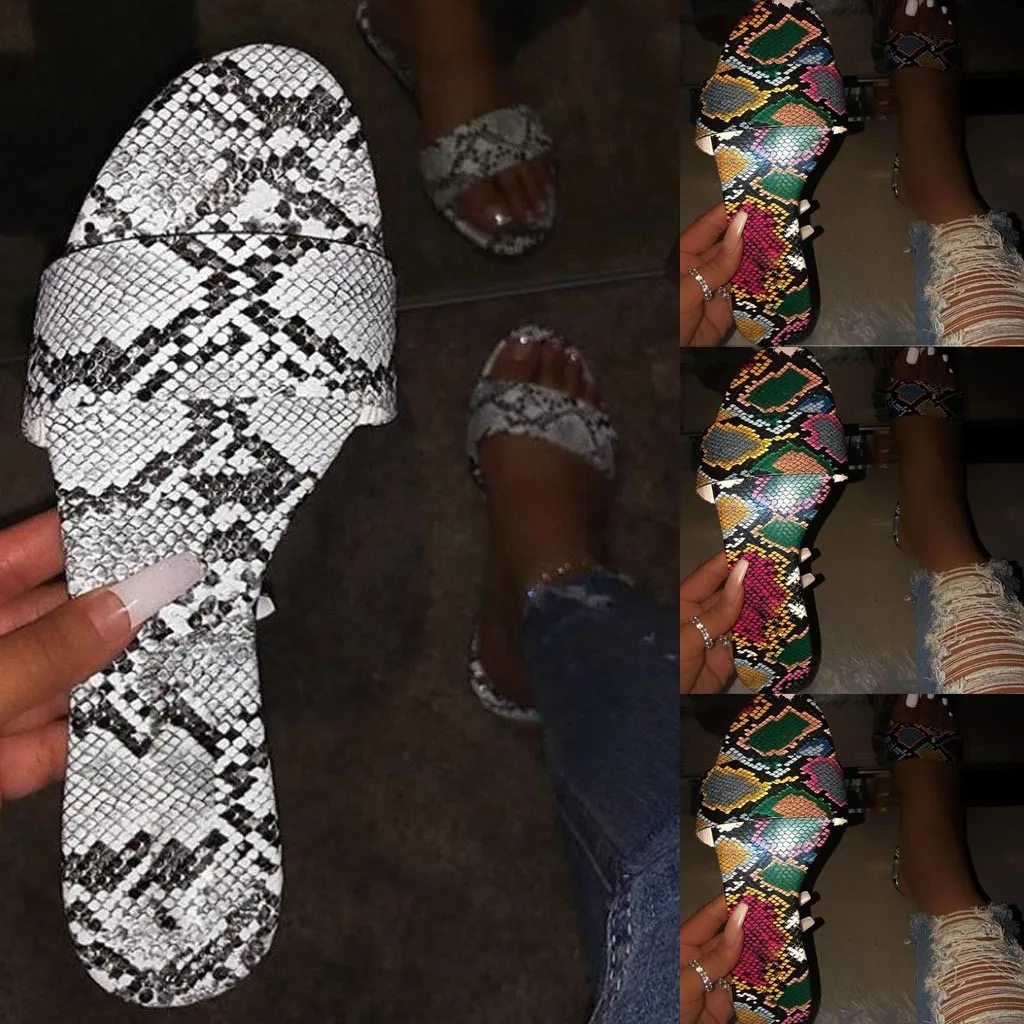 Женские нескользящие тапочки на плоской подошве; Повседневная пляжная обувь со змеиным узором; большие размеры