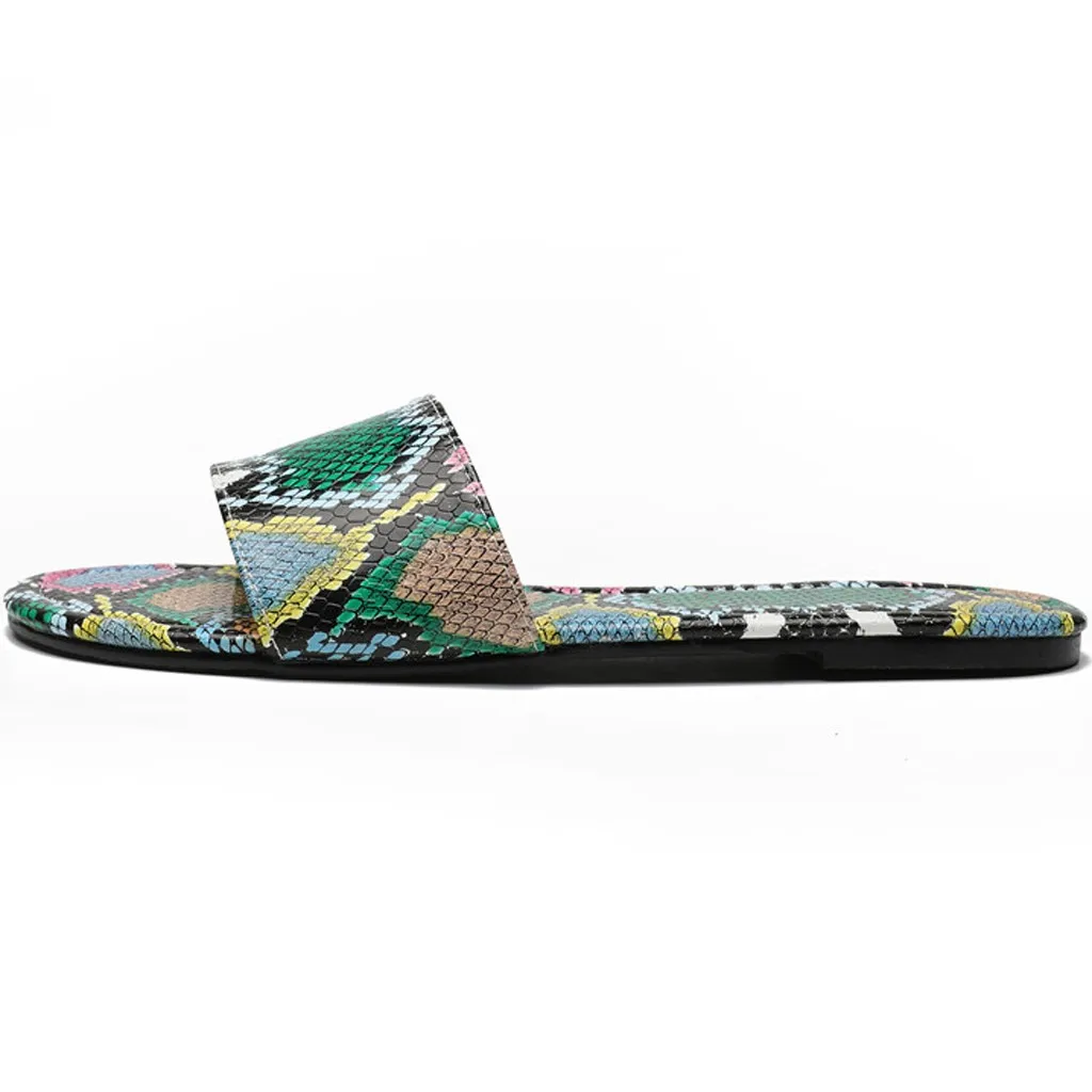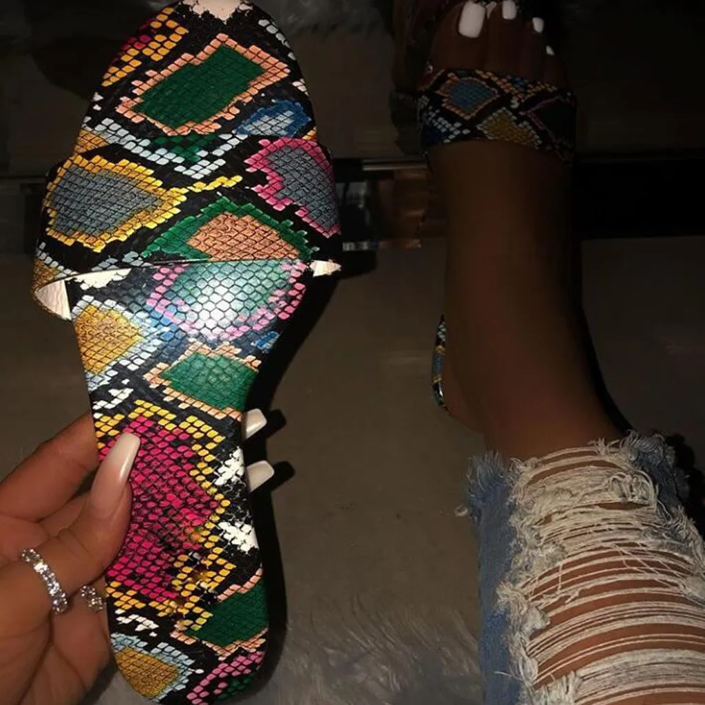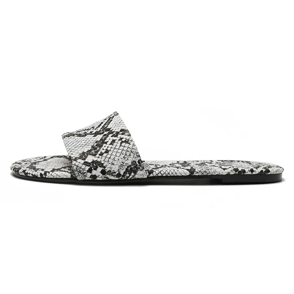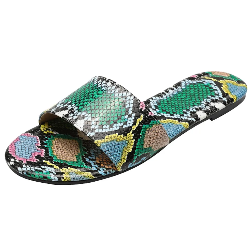 Женские нескользящие тапочки на плоской подошве; Повседневная пляжная обувь со змеиным узором; большие размеры